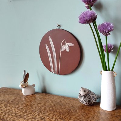 Snowdrop stoneware hanging tile. This is not glazed, it is fully and vitrified